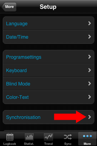 In the iPhone-App please click at 'More >>Settings >>Synchronisation'