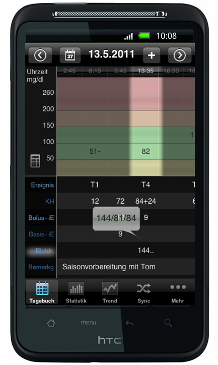 Eine Bedienungsanleitung dazu finden Sie hier: Diabetes App Android: Bedienungshinweise