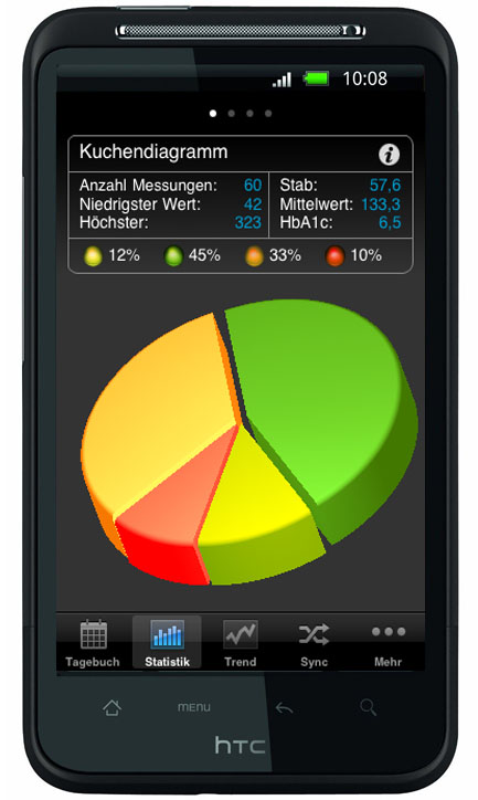 - umfangreiche Statistik-Grafiken (Kuchendiagramm, Verlaufskurve, Standardtag und Detailstatistik)