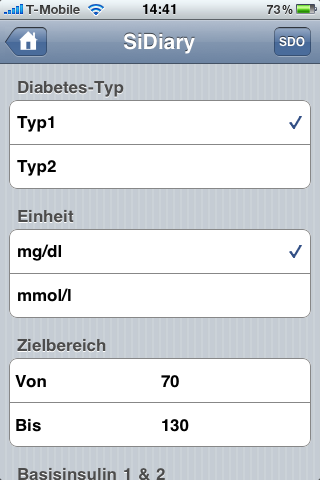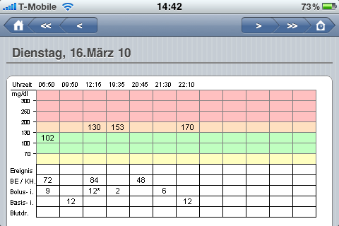 Dort haben Sie die Möglichkeit, Daten zu Ihrer Diabetes-Therapie zu erfassen, ohne dass Sie die Seite erst vergrößern müssen. Auch das Scrollen ist dann nur noch vertikal (von oben nach unten) nötig, um weitere Details zu sehen.