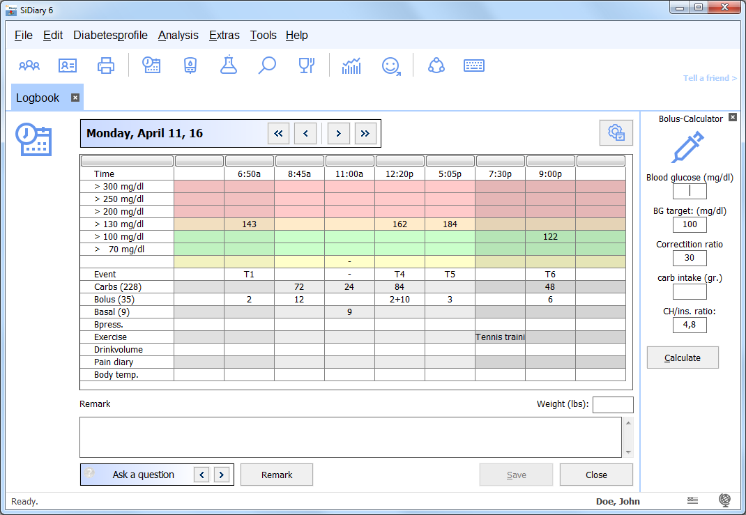 Two months later you are ordering the same meal in that restaurant. Without your log book it would be hard to remember the number of carbs that you have estimated last time and that you encountered the problem with the arising level after that meal. With SiDiary on your Smartphone this look up is pretty easy and you can continue with really enjoying your meal...