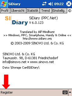 5. Install SiDiary V6 on your mobile device (Cellphone, Smartphone or PPC). Start it there and register it like you have registered your PC.