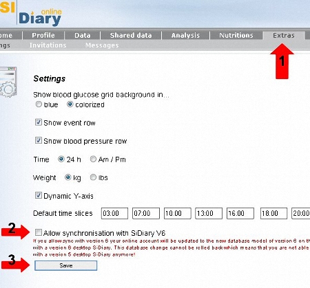 6a. BEFORE the first synchronisation make sure that on SDO in the menu 'Extras' the Option 'Allow Synchronisation with SiDiary V6' is enabled and saved.