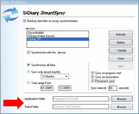 7. In the PC version of V6 menu 'Extras ->SmartSync-Settings': for the Pocket PC or the Windows Smartphone set up the paths to the program folder and the data folder (for questions use the key F1 on your keyboard to use our excellent help function)