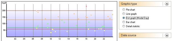 In the example graphic you see an accumulation of values from over 140 mg/dl to