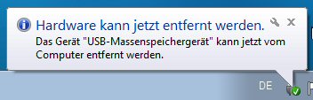 Wenn Sie den Stick gefahrlos abziehen können wird Ihnen das durch eine entsprechende Meldung angezeigt: