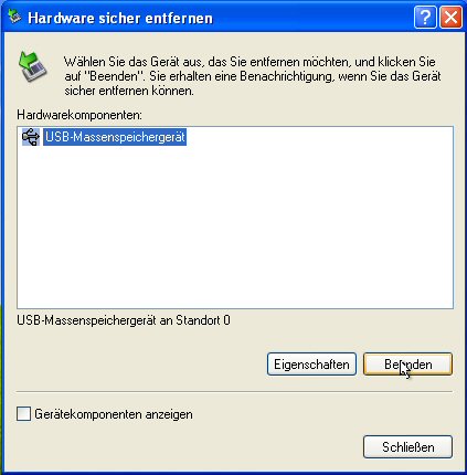 Den Stick unter Windows 2000/XP/Vista sicher entfernen: