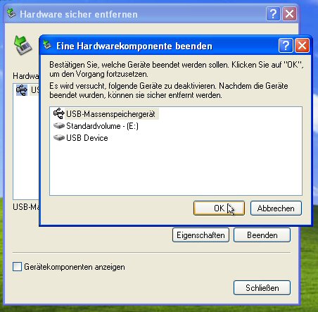 Bestätigen Sie im folgenden Fenster, daß Sie den Stick wirklich beenden möchten: