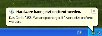 Danach bekommen Sie eine Meldung, daß Sie den Stick jetzt gefahrlos abziehen können: