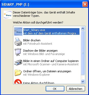 Wählen Sie hier einfach 'Start_SiDiary.exe' und klicken Sie auf 'OK'. Das Programm startet dann.