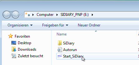 Mit einem Doppelklick auf 'Start_SiDiary' starten Sie das Programm auf Ihrem USB-Stick