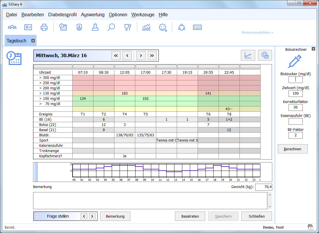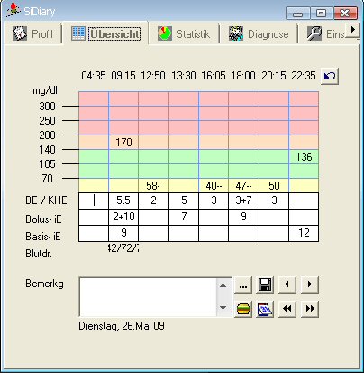 Unser Credo ist, daß es sich letztendlich nur um Daten handelt, und warum soll man die in eine fest vorgegebene Form zwängen? Der Vorteil von SiDiary ist, dass alle an der Entwicklung Beteiligten selbst langjährige Diabetiker und/oder Diabetesprofis sind. Im Forum kann sich jeder ein Bild davon machen und ist herzlich eingeladen, auch seine Wünsche und Ideen einzubringen. Damit unser Slogan mehr bleibt als nur ein Werbespruch: